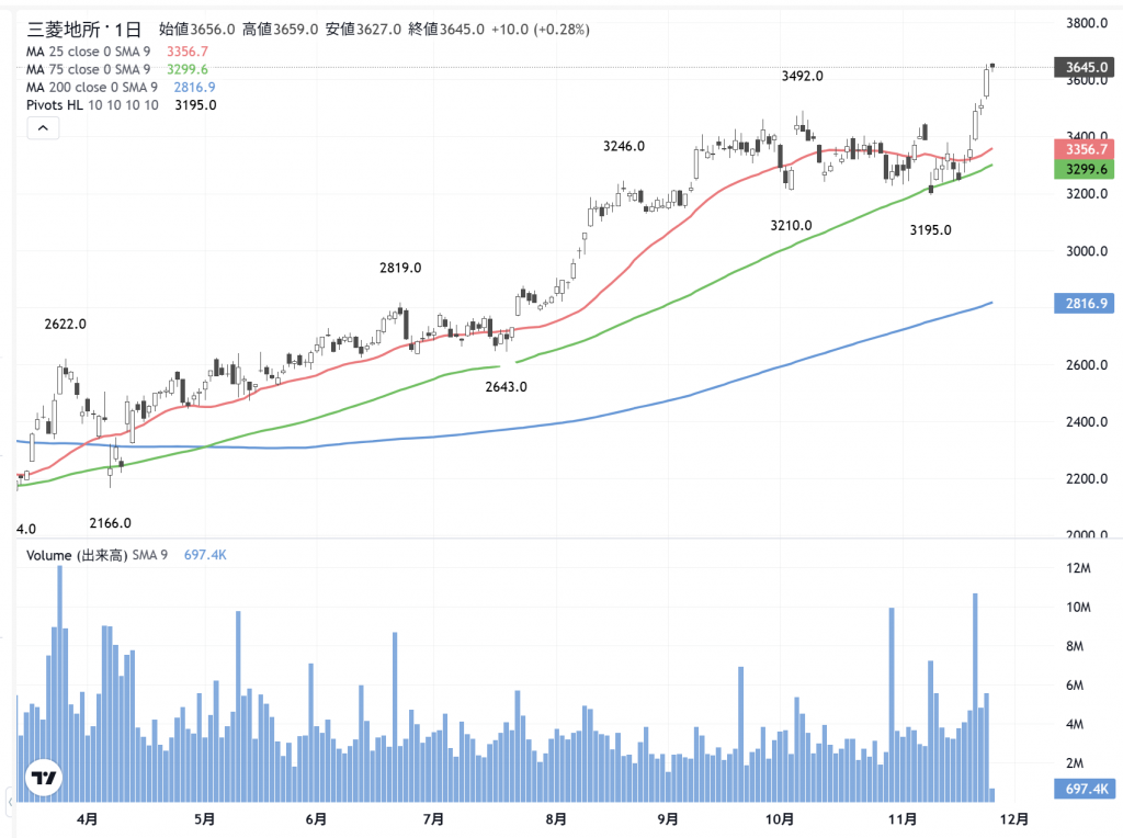 実は、金曜日の相場で…あの環境の中で「三菱地所」(8802)が、異色の値動きでした。先ほどの「3点セットの流れ」が「あるな」と思っていたら、昨日は「野村証券」(8604)が異色の展開でした。気付きましたか?