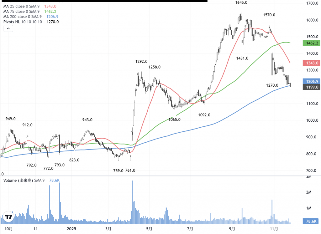 しかし最近は、その感覚はドンドン縮まっているように感じています。あとは、皆さんの選択です。昨日は、大昔かな? 不動産株の「G君」が下げて来て…200日線に到達したので、1190円で500株の「打診買い」を入れました。会員レポート銘柄です。そうして「三菱地所」と共に…採り上げています。チャートだけ掲げておきます。