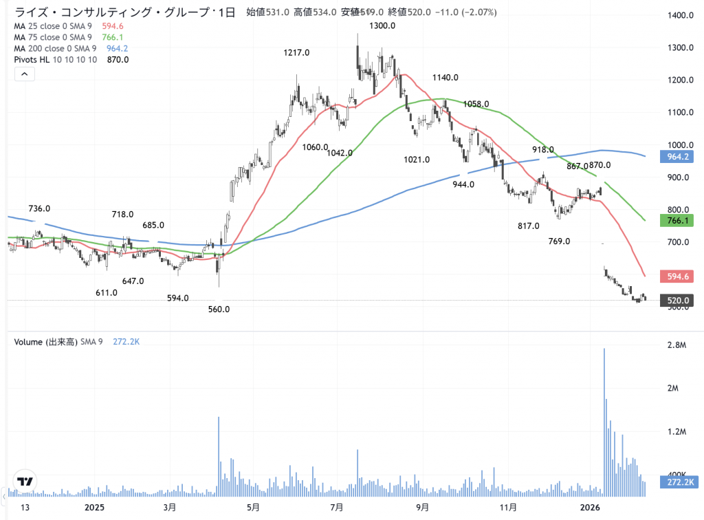 まぁ兎も角、今日は「ライズ・コンサルティング・グループ」(9168)の業績と内容を説明して…終わりにします。発展させるのは、又の機会にしましょう。馬鹿でも分かる解説です。ジェイドGの場合に似ているかな? 事前予想を覆し…減収減益になったから、2日間の連続のストップ安を挟みました。