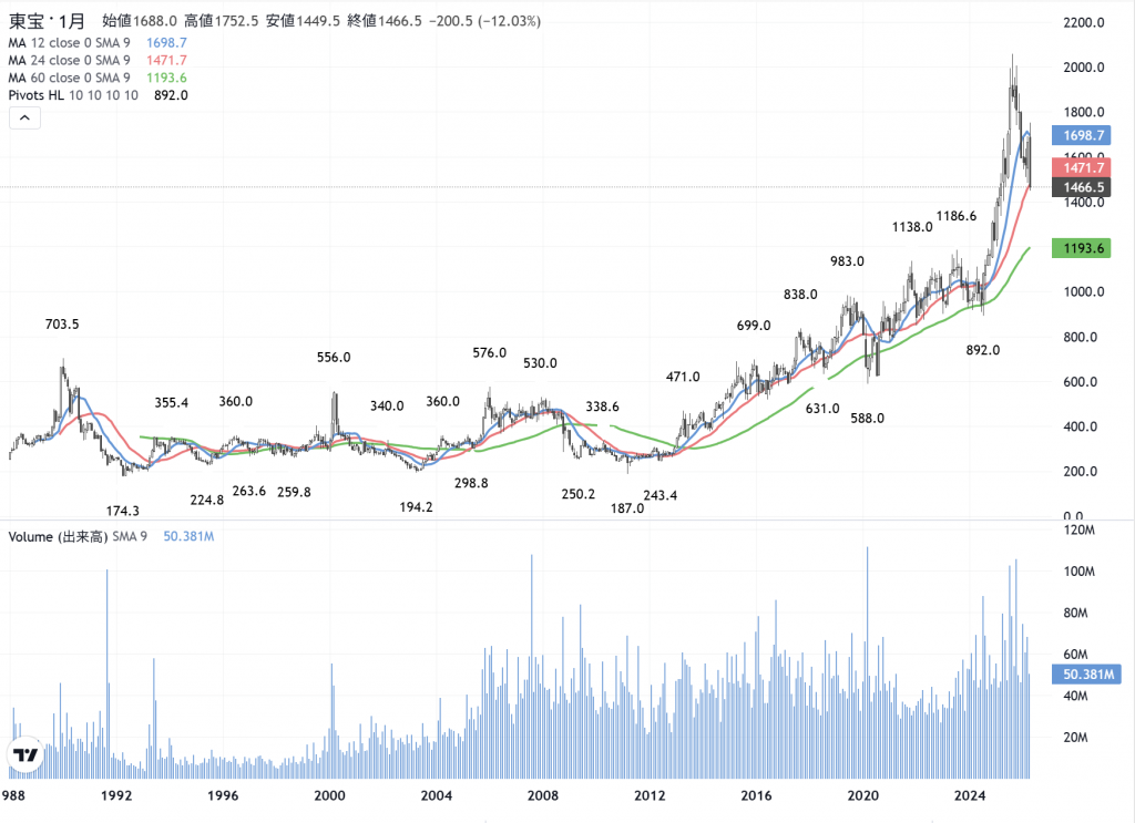 東宝(9602)の月足