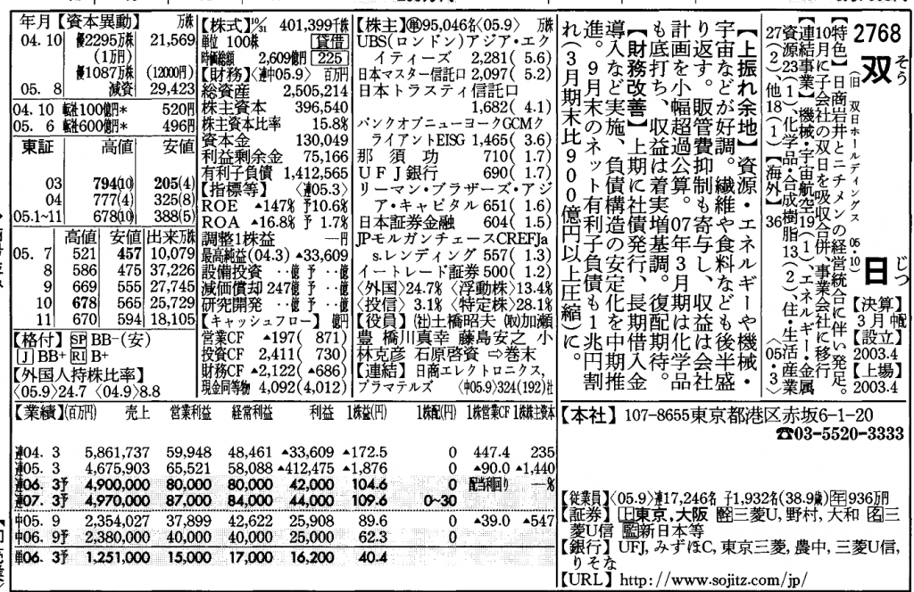 僕らは、日商岩井の段階で…日本の商社株の「株価はおかしい」と…みんなで「株集め」をしていました。2006年当時です。実際に双日の前身の日商岩井時代の株主名簿に、佐藤さんの顧客だった那須さんが、大株主名簿に名前を連ねています。当時、710万株程、株を集めた事が分かります。