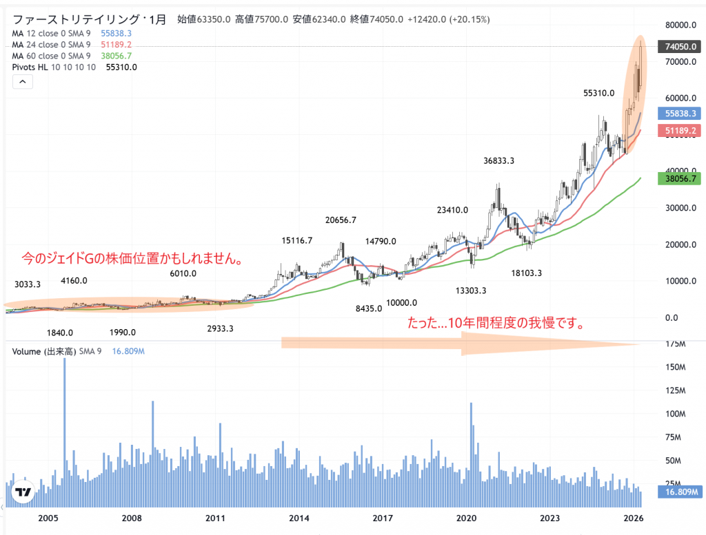 この時期はカタルも、その現場に居ました。隣の浜ちゃんも100万株程度は、株を買っていたのでしょう。勿論、僕も…ある程度、株を買っています。このケースは「赤字から黒字」の段階で、参戦をして居り…なお、ジェイドGのような…「復配」予想になっています。