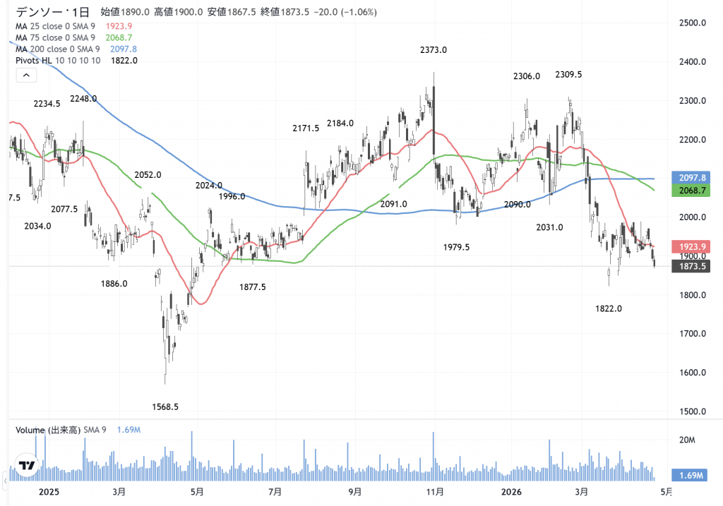 保守的な顧客層にも…博打好みの株も共に伝えています。今日も下げていますが、デンソー(6902)や三菱ケミカル(4188)などは保守層向けでしょう。