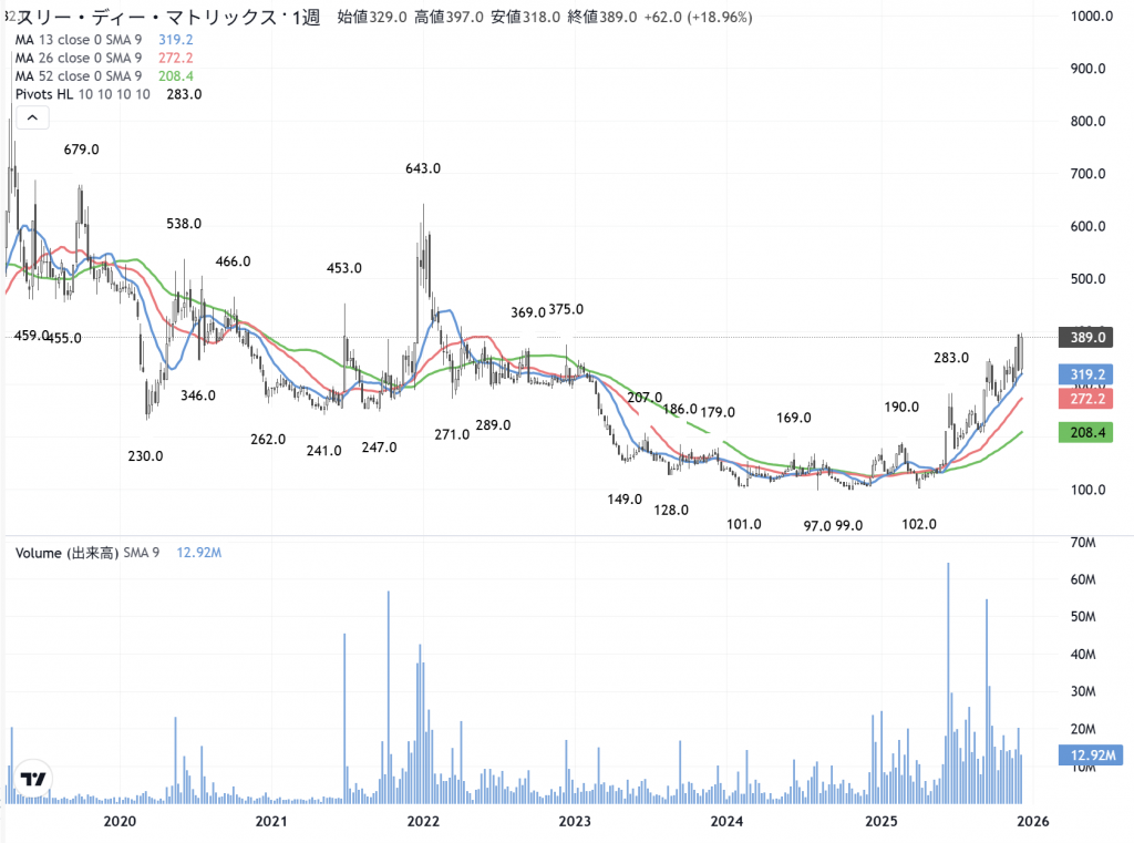 3Dマトリックスの成長を、暖かく…「見守れば」良いのでしょう。故に、無料になった…儲けのカスを残して…10年でも20年でも…時間を掛けて、その成長を供に過ごすのです。そうして観察を続ければ、その企業が「大きく伸びる」時期に、また遭う事があります。その時に、また単発で相場に参加すれば、何回も、何回も…相場を楽しめます。