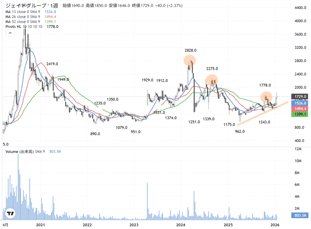 もう下値は在りませんよ。何故なら、先の高値の1778円を貫いて…今回は1850円を付けたからです。仮に何か…隠れた「トラブル」を抱えていて…株価が下がる株なら、先の高値の1778円を更新できません。