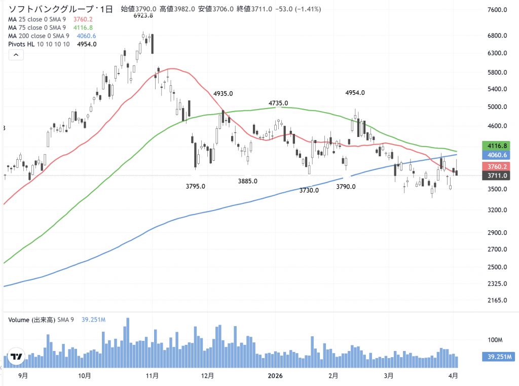 ソフトバンクG(9984)の 日足