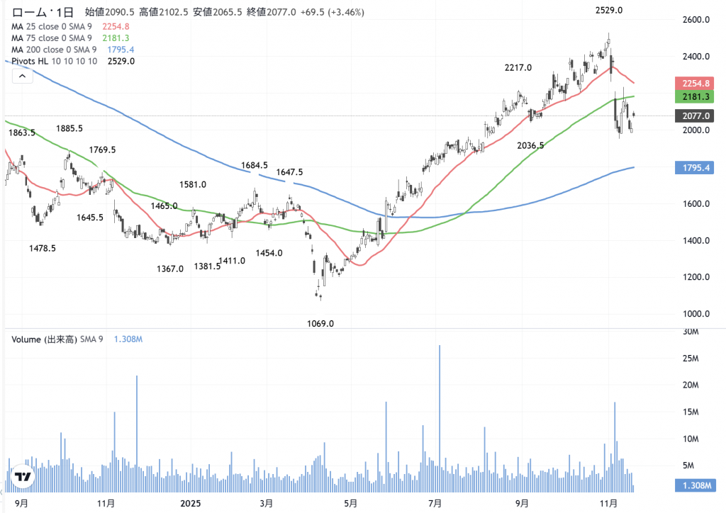 相場が始まりました。今、気づきました。アララ…その「ローム」(6963)を買ってみましょう。2000円割れなら「何処でも良いか…」。しかし…肝心の「ルネサスエレク」(6723)の1780円の買い物は「箸にも棒にも」…かかりません。トホホ…。