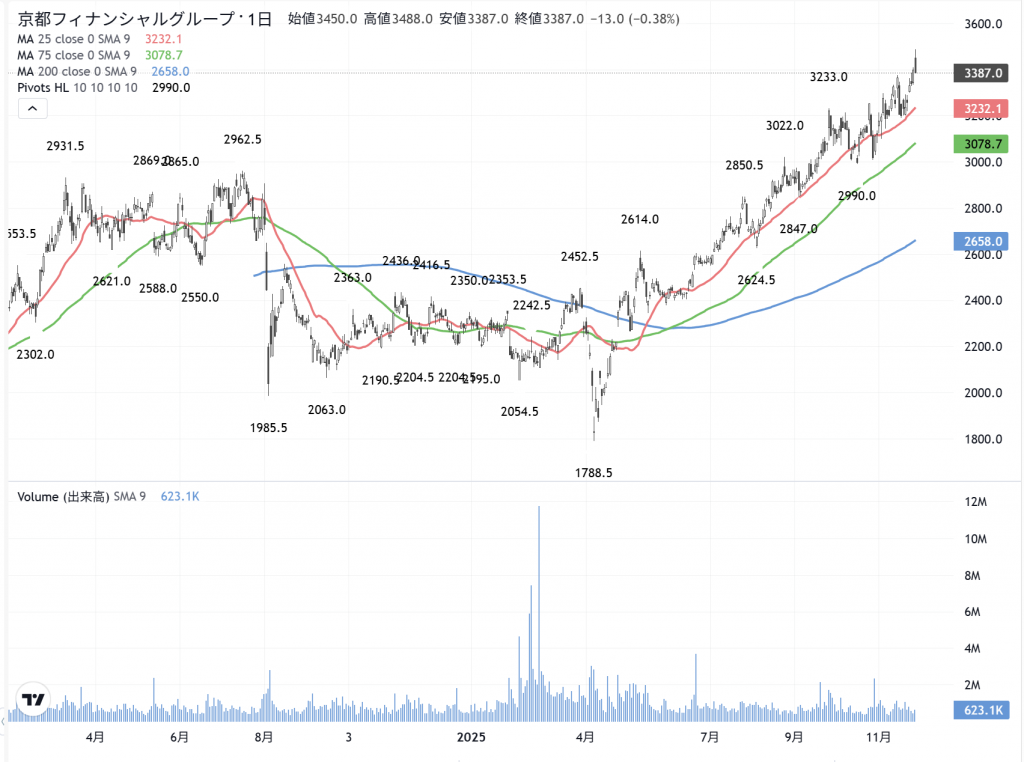 異常な…感覚です。目先に拘るか…どうかは「人それぞれ」の人気です。昨日の銀行が強かったのは、日銀の利上げ観測ですが、あの「京都FG」(京都銀行=5844)は上がったのですね。カタルは注目していた時は「持ち合い株式」の含み利益です。この株は再上場になっており、いくらで推奨したか…覚えてないのですが、やはり2倍や3倍になっています。この時間軸が今の「グローバル基準」の銘柄です。
