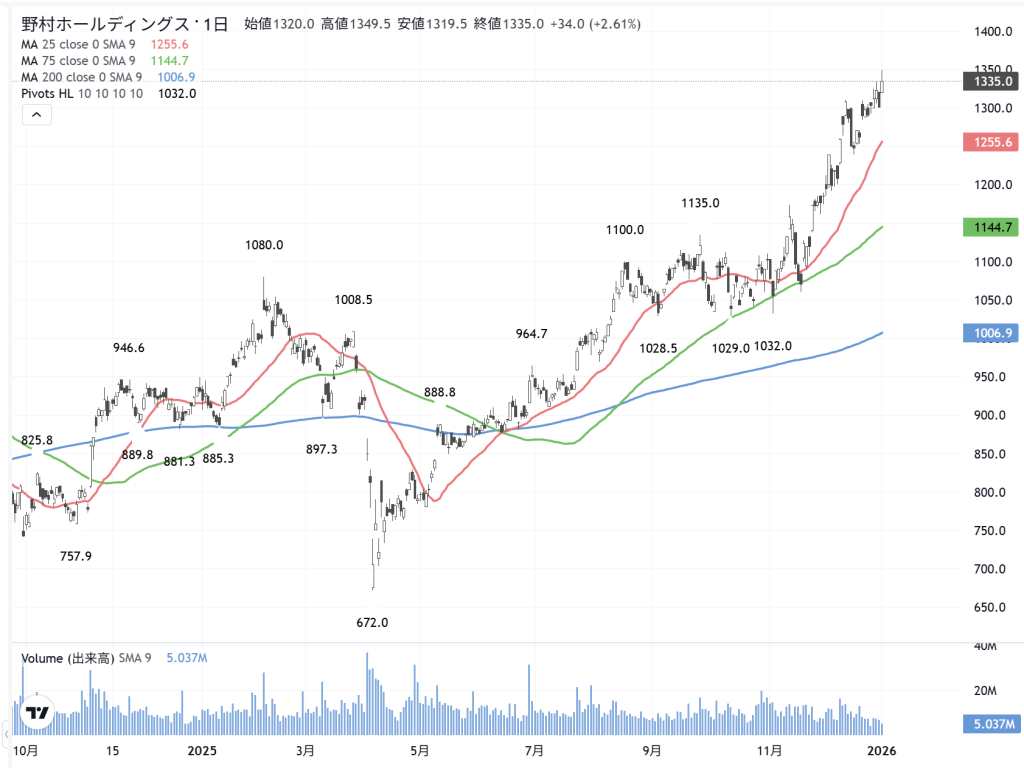 そうして…「野村証券」(8604)ですね。ようやく…値動きが軽くなって来ました。本来の証券株は、「市況」に大きな影響を受けますから、株価の値動きは船株以上に激しいのです。しかし近年は同じ市況でも、「半導体市況」に世間の関心は向かっています。「キオクシア」(285A)の相場を逃したのは、痛かったかな?
