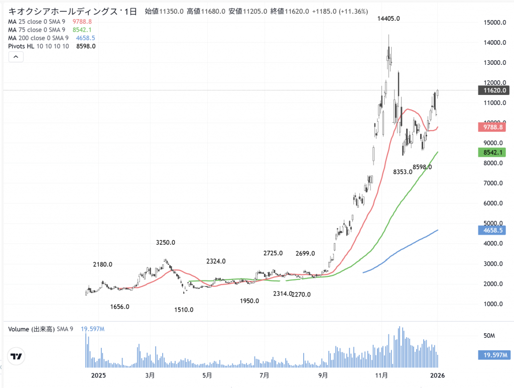 たかが牡蠣フライの価格変化で驚く「心」を、早く…自分に馴染ませないとなりません。今までの相場の感覚では…「ローム」(6963)の謎(赤字なのに…株価が騰がる)は「横の広がり」を生みません。しかし…今回は、いきなり「キオクシア」(285A)が走り出しました。