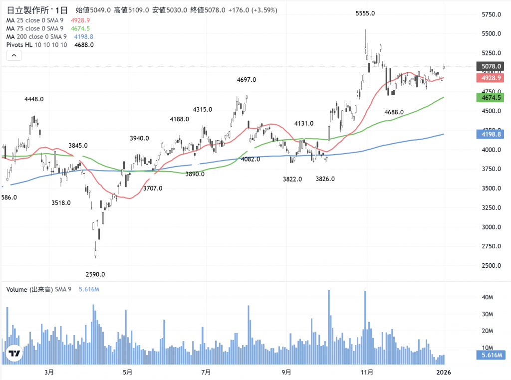 どんな…高値を買っても良いのです。実際に、昨年末に「日立」(6501)をカタルは200株だけ買っていますが、本日の相場では「大幅高」をして居り、既に「利食い」領域です。ブツブツ投資だから、最初は200株だったのです。