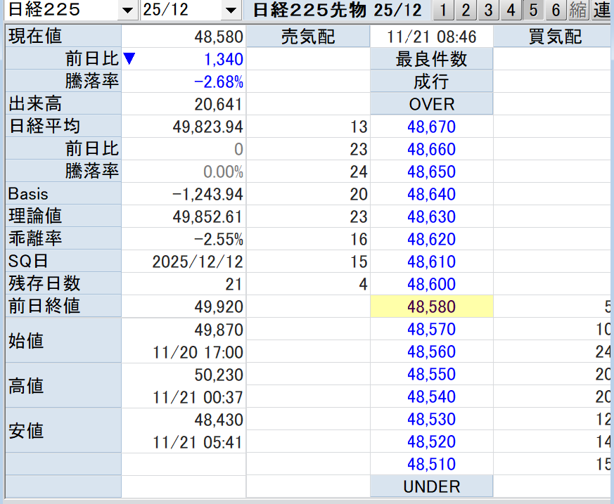 しかし…カタルは「負け組」です。でも必死に「藻掻いて」います。何とか…この「壁」を破りたいと思っています。今朝の先物は、今は8時47分ですが…こんな感じです。しかしカタル銘柄の225採用の「デンソー」(6902)と「ルネサスエレク」(6723)は、こんな…気配値です。