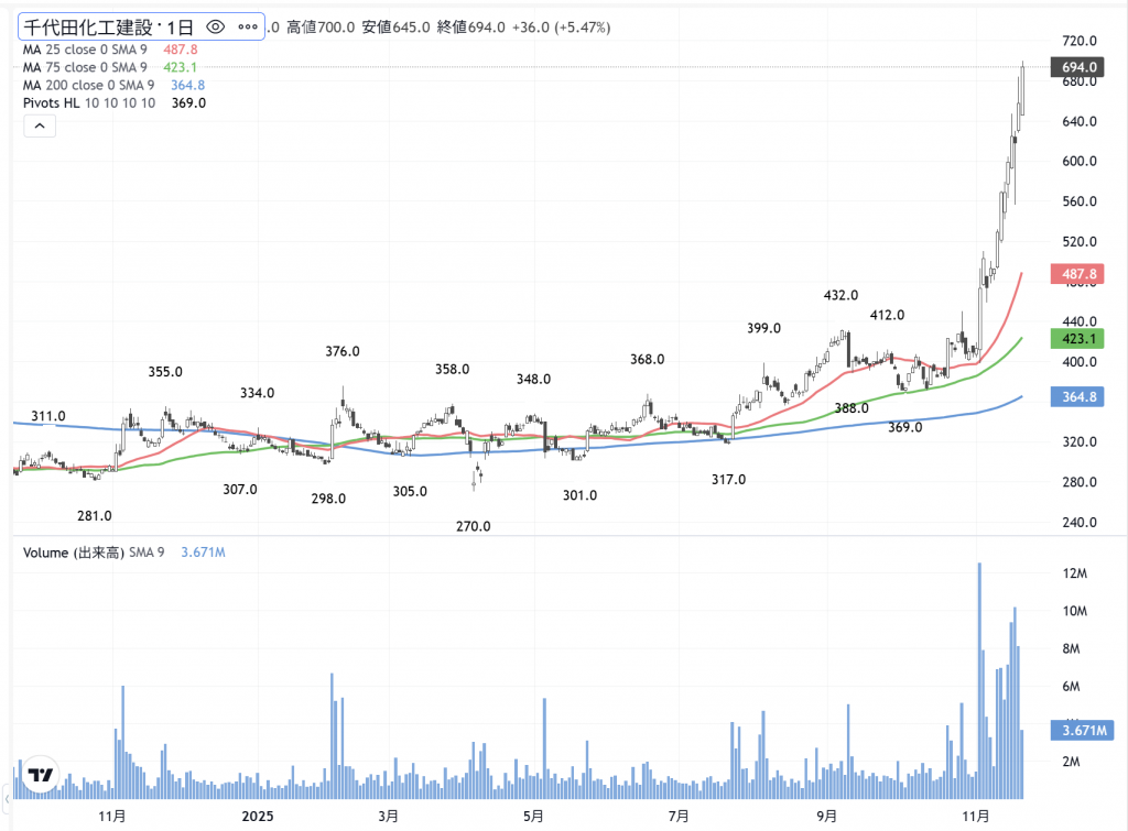 やはり「千代化」(6366)は、火を噴いています。もともと…4桁の実力株です。このタイミングで来るのでしょうか? やはり書く以上、少しだけ買ってみるか…。前から狙っていた株です。700円に売り物が、23万株出ています。それでは今、500株だけ「成り行き」で、買います。ハイ、698円と699円で買ったようです。あの500円の時に買わずに…トホホです。