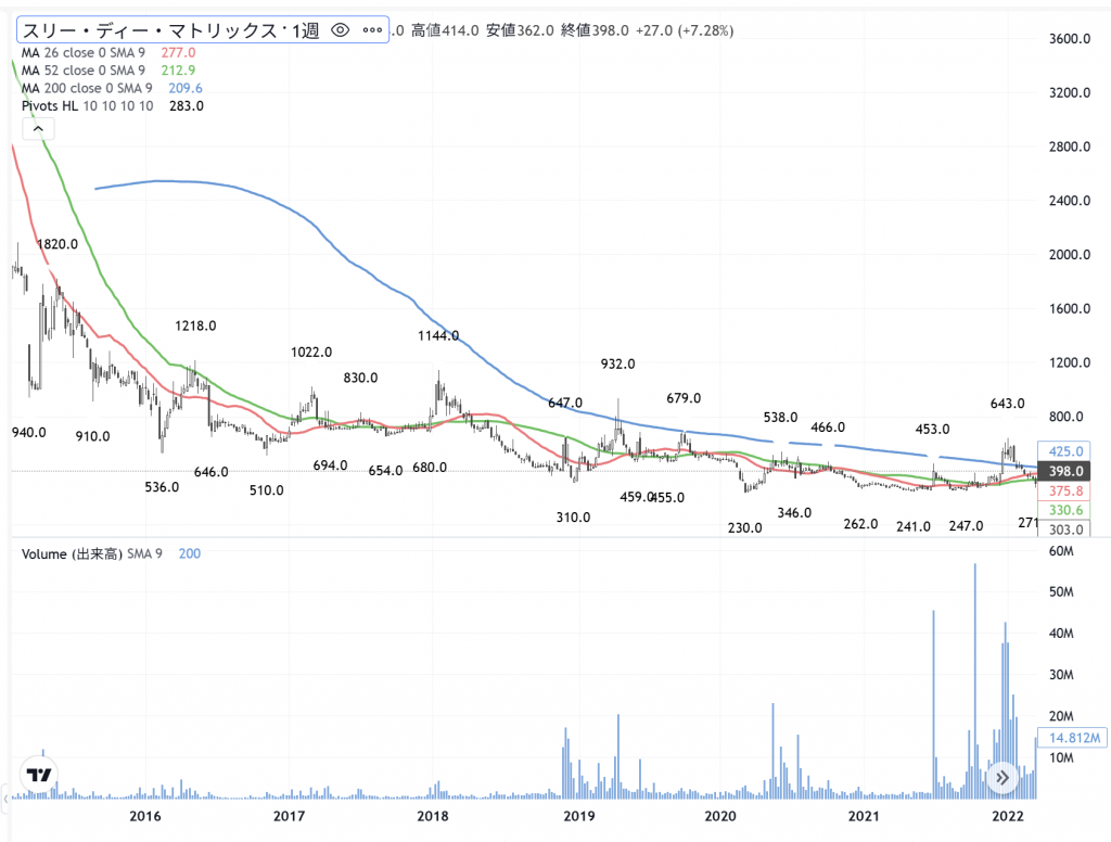 株式投資は論理的な世界です。だから…「馬鹿のような」考え方は、やめましょう。「3Dマトリックス」を高値まで追うのは、「目先筋」だけなのでしょう。何故、100円台の時に大量の玉を仕込まないのでしょう。未来は事前に決まっていたのです。