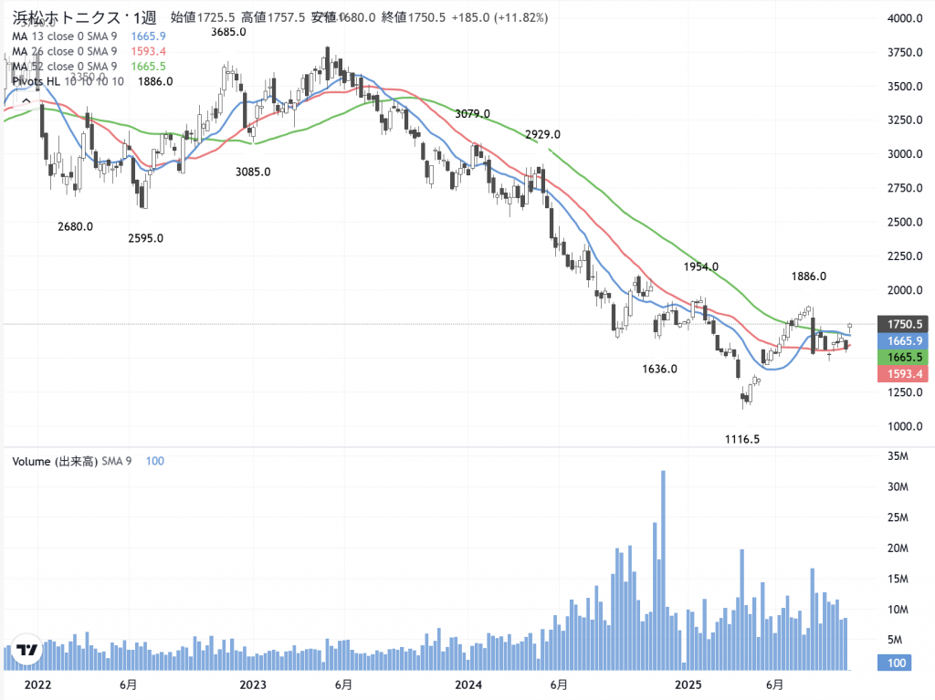 やはり「ホトニクス」(6965)は、切り返しています。先ほど1725.5-1757.5-1680-1725なのです。先ほど1680円まで在って…株価は反発しています。なにか…発表があったのかもしれません。