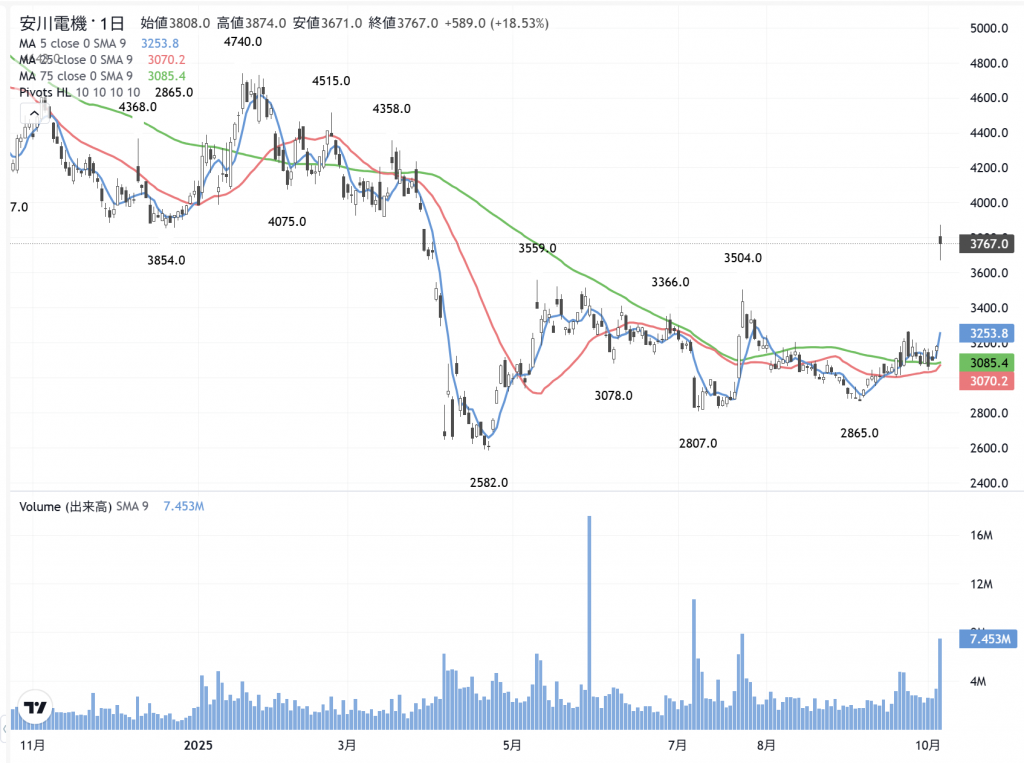カタルは「AI革命」の進展が広がる「オープンAI」との協業を観て金曜日の相場で、「日立」の株価が上がる様子は、まるで「ローム」(6963)や「キオクシア」(285A)と「同じ匂い」を感じました。いずれも…これまでの相場感覚では「早い」のです。しかし実際に「仕掛けて」みると…意外に、市場はその株価の「爆上げ」を容認しています。