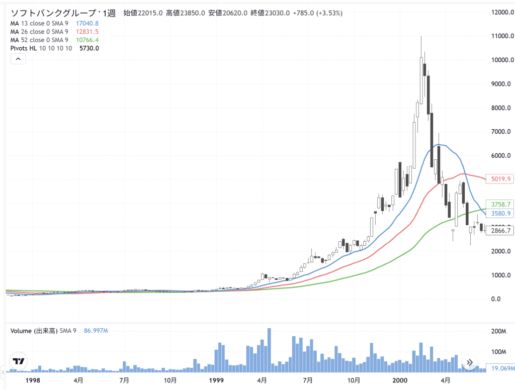 何しろ、当時は「ソフトバンクG」(9984)の「一本槍」です。1000円以下から…1万円を超えてから売っていましたが、一人だけ「俺は売らない」と言う顧客が居て、2000株を保持していました。198000円を超え…「ITバブルが崩壊」してから、カタルは彼に責められました。