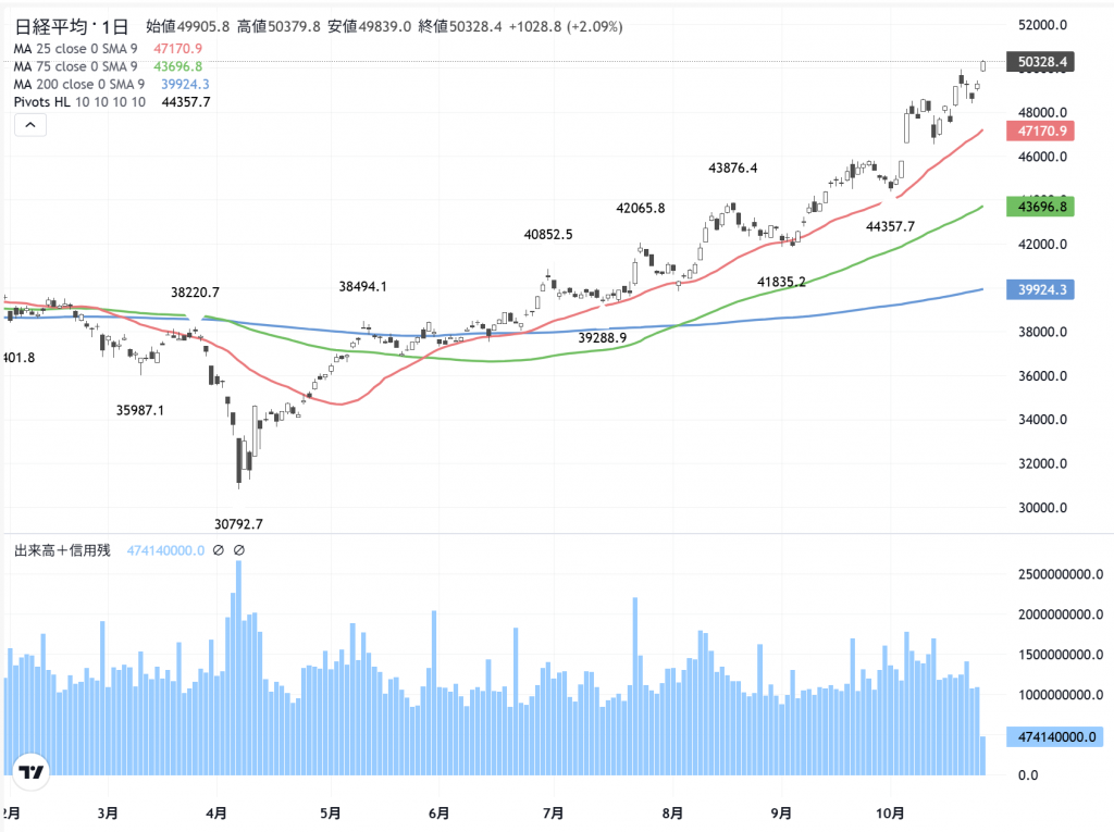 日経平均株価は5万円を超えて来ました。基本は「此処から相場は始まります」が…株価が常に「上下に」大きく振れますから、自分の気持ちを、「大切」にしましょう。目先の「売り買い」をしない人は、別ですよ。ノンビリ構えましょう。
