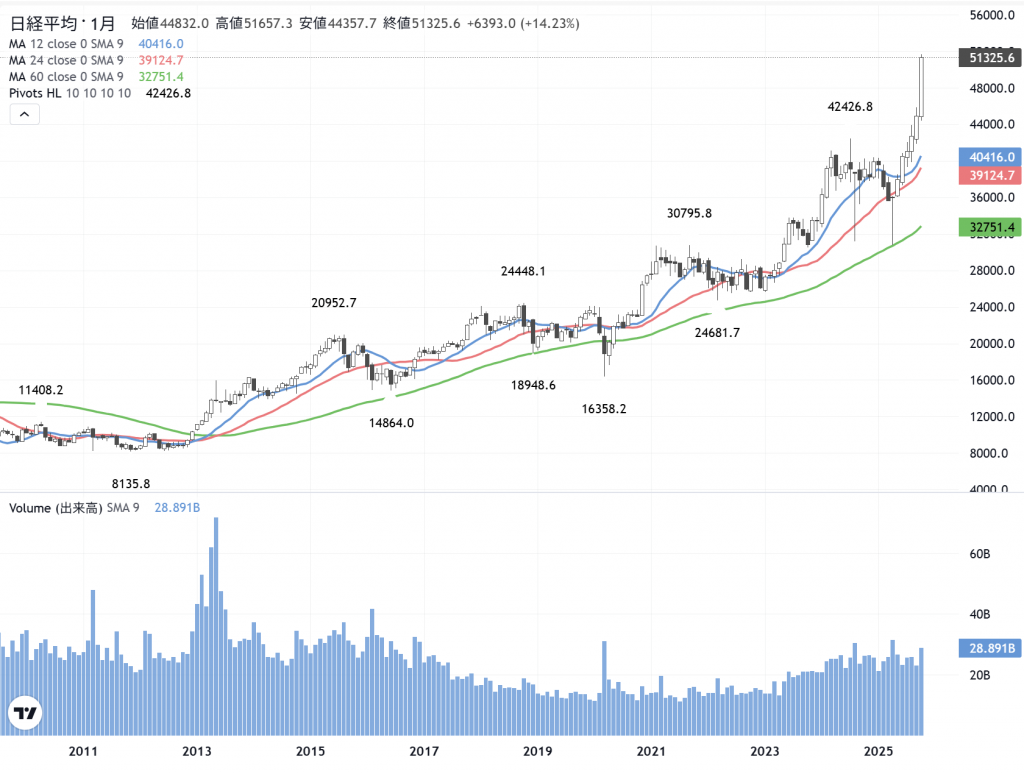 日経平均株価の月足