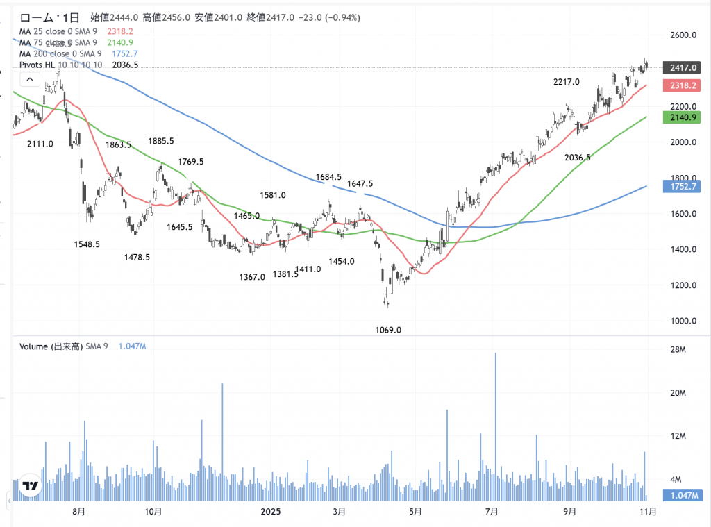 「ローム」(6963)の 日足