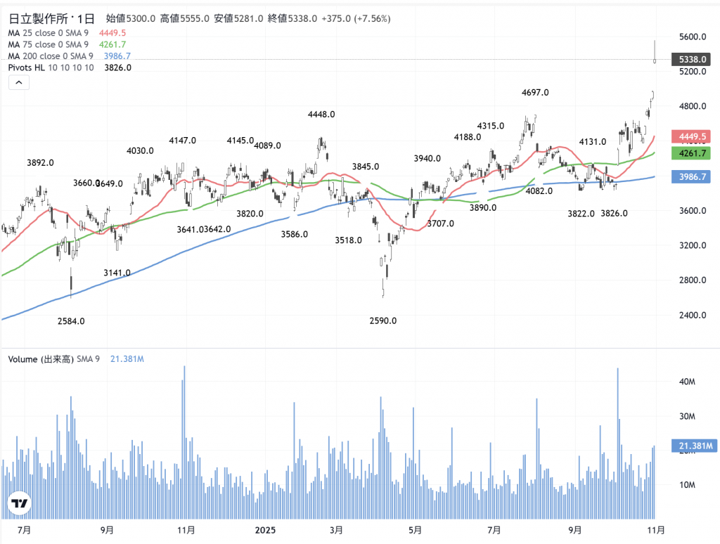 「日立」(6501) の日足