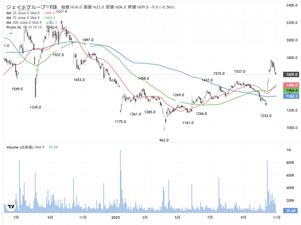 「ジェイドG」(3558) の日足
