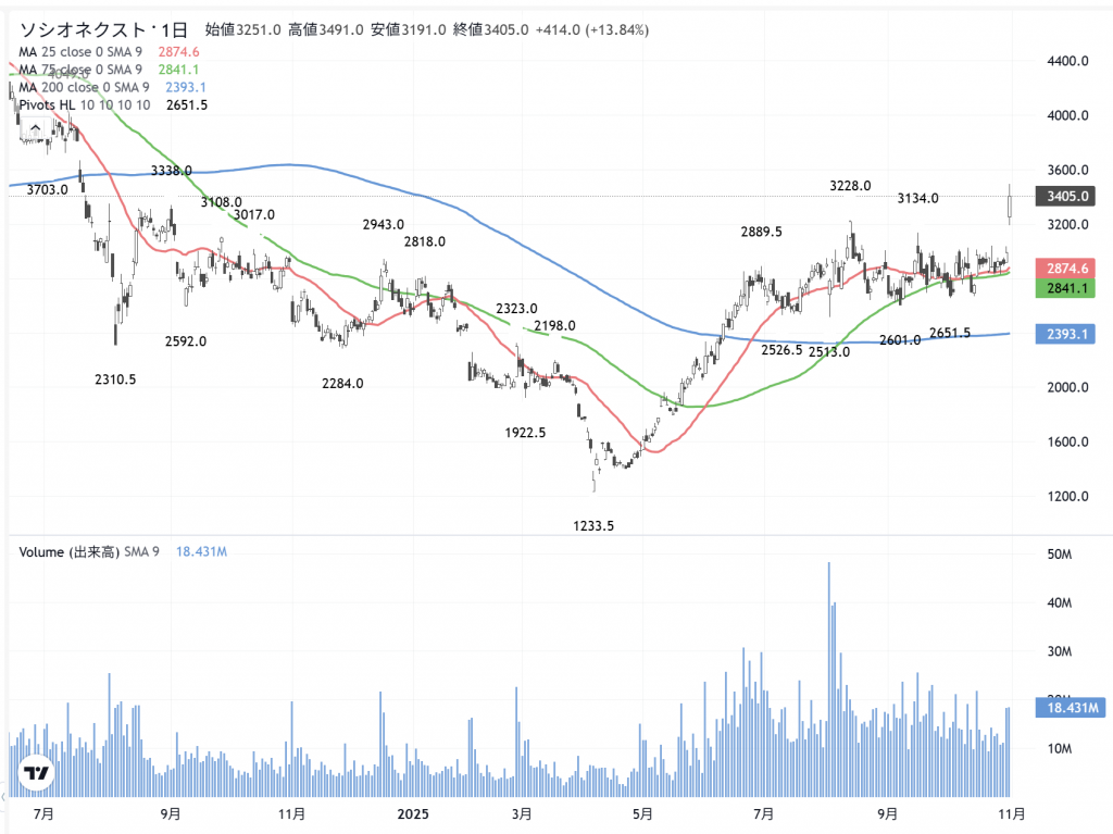 「ソシオネクスト」(6526) の日足
