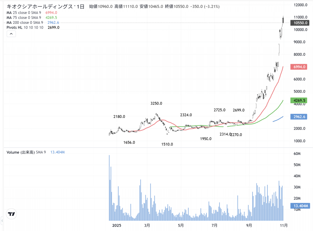 「キオクシア」(285A) の日足