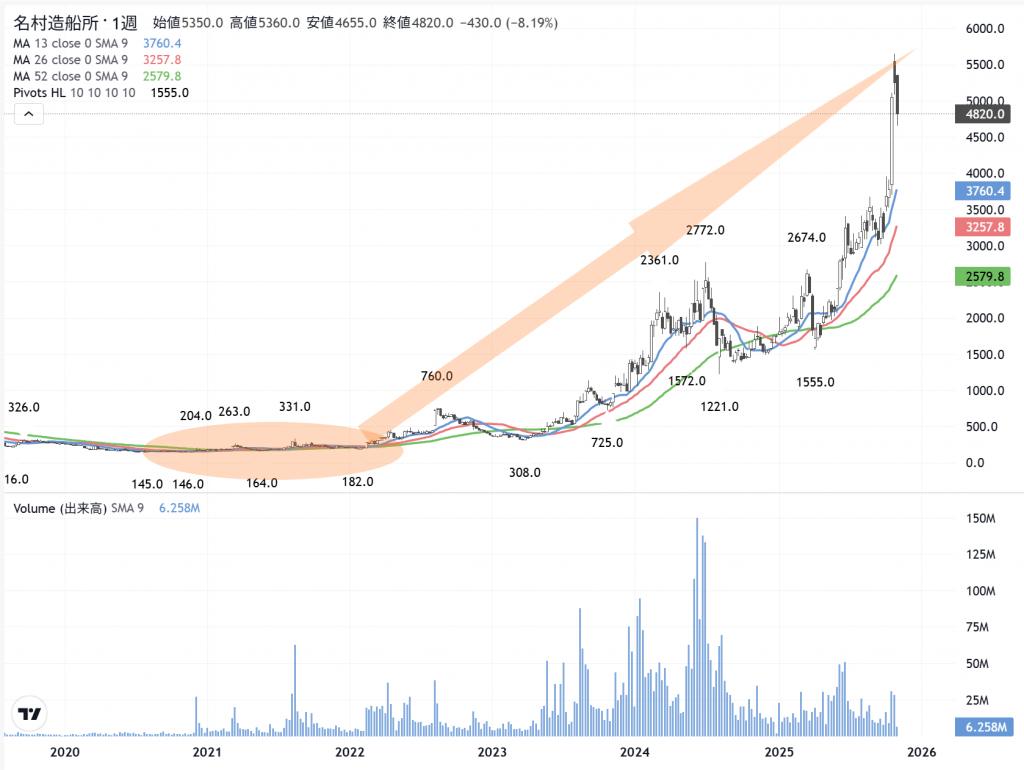 今は、時めく…「重工」(7011)も同じですよ。「豪華客船」で大赤字、「MRJ」で大赤字を経て、今の「三菱重工」があります。その困難な蓄積があるから、今の相場に発展します。