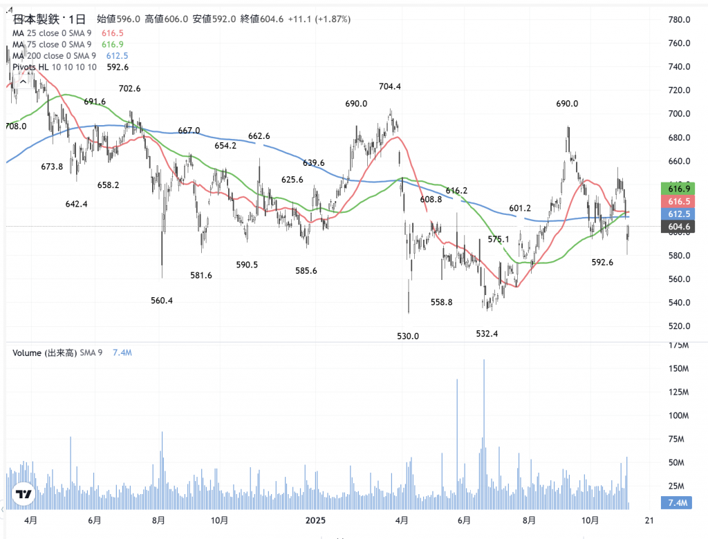 今日は注目している…「日本製鉄」(5401)の決算が発表されて「赤字」だそうですが、株価は「未来を観て」騰がっているように思えます。「ローム」(6963)の謎を、長く…語って来ました。もう一つの「構造改革」の赤字企業の「グンゼ」(3002)も、株価は高いようです。「黒字リストラ」も増えてきました。