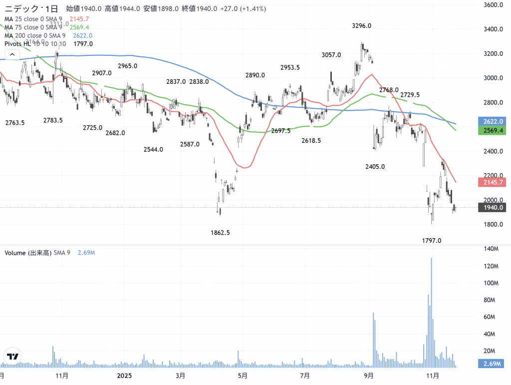 しかし細心の注意を払わないと「足元」を掬われます。一番「怖い」のが…「隠れ債務」です。「東芝」が上場廃止に追い込まれた…要因です。故に買収にあたり…「瑕疵担保責任と契約不適合責任」などの整備が欠かせません。まぁ専門家の田中君に、言う必要もありません。さて…相場が始まりました。どっちにしても…四季報の発売日は、確か…12月17日だったかな? その辺りになると…カタルは2000円台へ…株価は向かうと思っています。