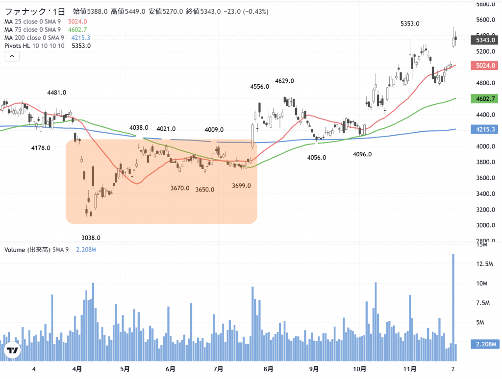 「ファナック」(6954) の日足