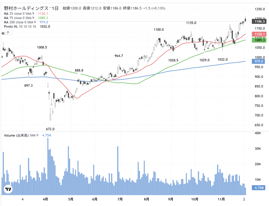 「野村証券」(8604) の日足