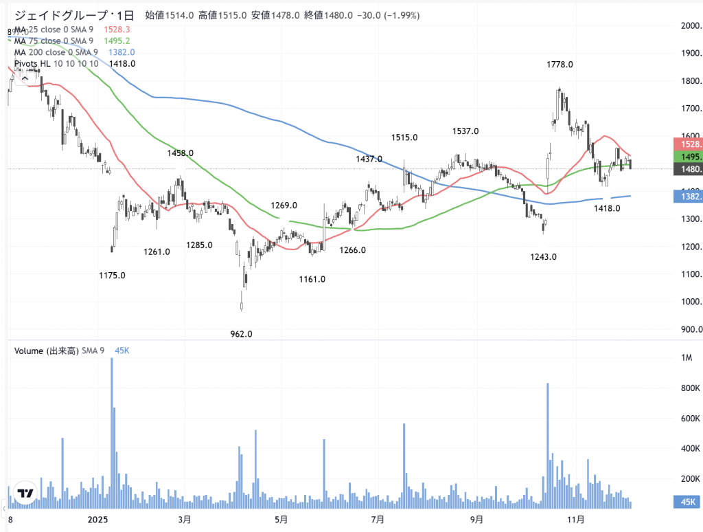 「3Dマトリックス」(7777)は安いのですね。金曜日に買っていますが、あまり増やすわけに行きません。「ジェイドG」(3558)が下値になったら、買わねばなりませんからね。今日は寄り付きで500株、そうして、今は1503円から500株ずつ…今、1500円も買えました。次は75日線の1495円です。まぁ、なかなか…「すんなり」行かない株です。四季報の発売日は、確か…18日でした。その数字がどうなるか? これが一般的な基準になります。