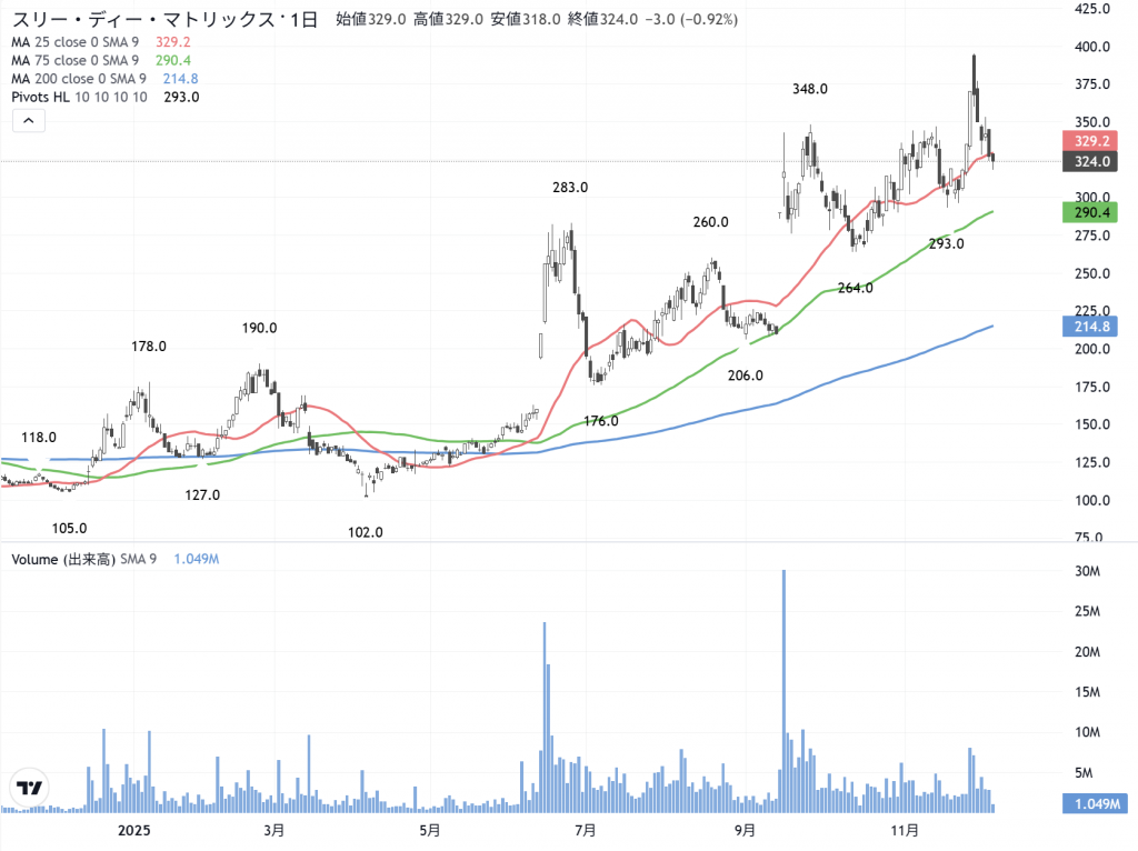まぁこんな所かな? 「3D」(7777)は「買い場」だろう…と考えています。この理由はあの日は単発の相場でした。370円を超えた…翌日は394円で始まり395円まであり…直ぐに人気が剥落しています。巧妙な相場作りです。上手いやり方です。