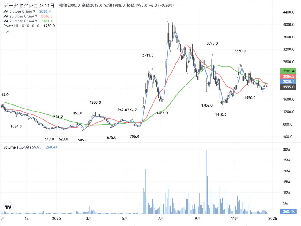 この会社はDX絡みですが…AI革命の進展で「需要が減る」と言われており、同業の高収益株である「オービック」(4684)も「ベイカレント」(6532)もソフト業界の株は、どれも…下降波動の調整期に在ります。でも…大きな企業ですが、意外に株価の値動きは、カタル好みで「変動率」が高いような株なのです。此処から…半値にはならないと考えています。既にまだ割高なのですが、辛うじて…「数字が合う」株です。