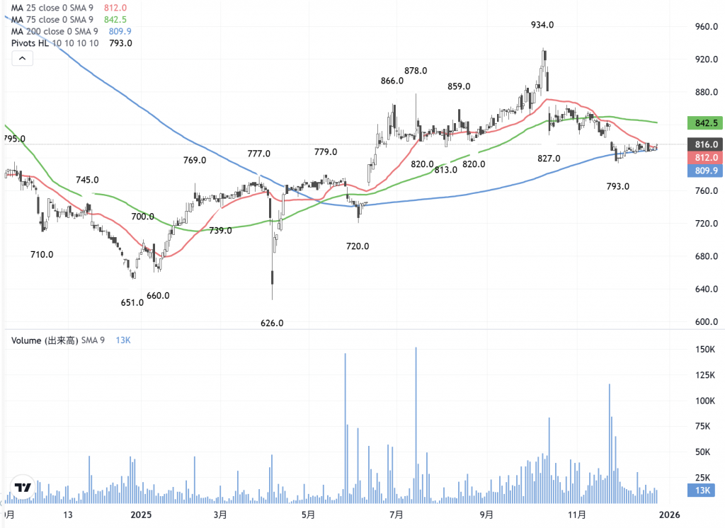 昨日は利食いをした「大阪チタン」(5726)ですが…同時に200日線を割れていますから、なかなかの株価位置でしょう。此処から買い参加すれば良いのでしょう。