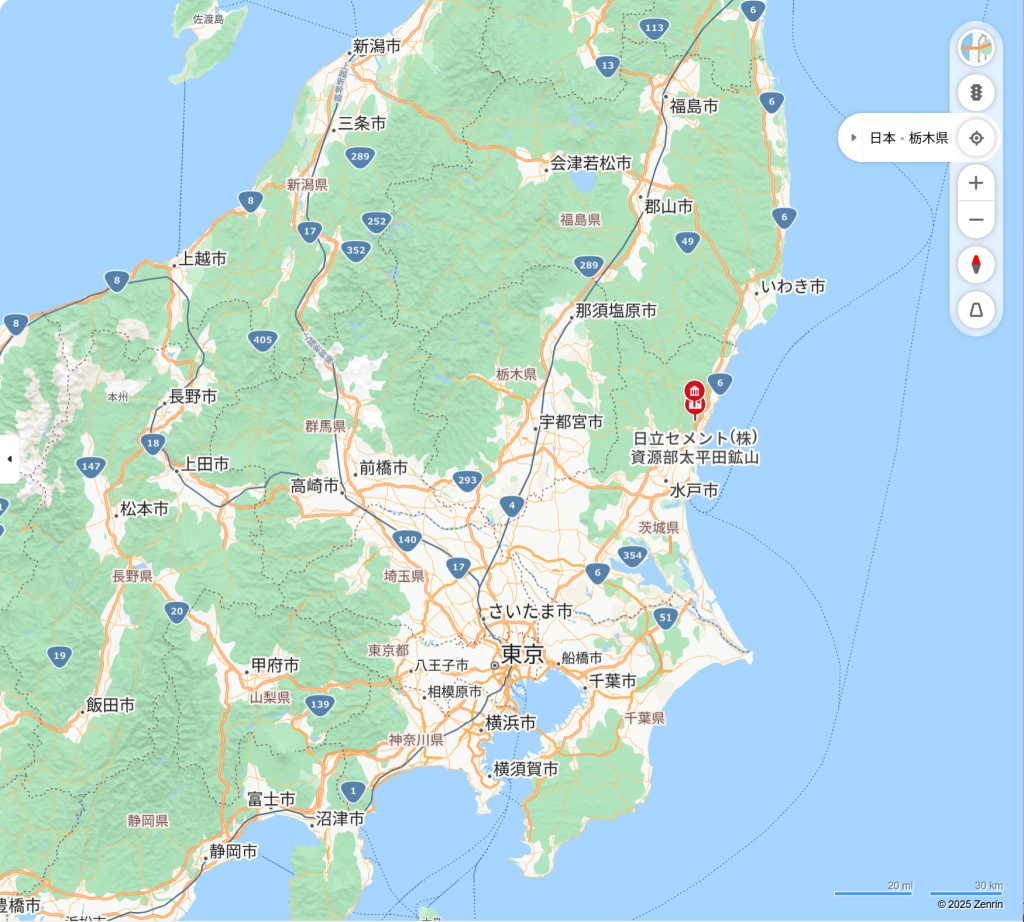 赤い所が日立市