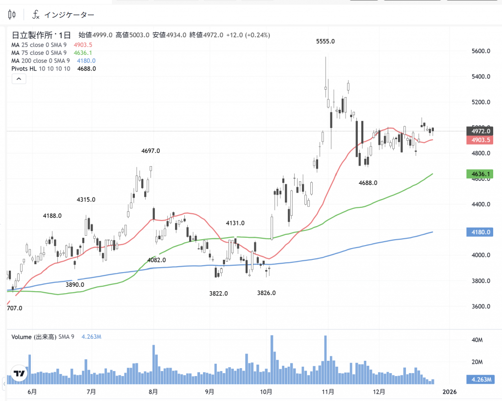 「日立」(6501)の日足