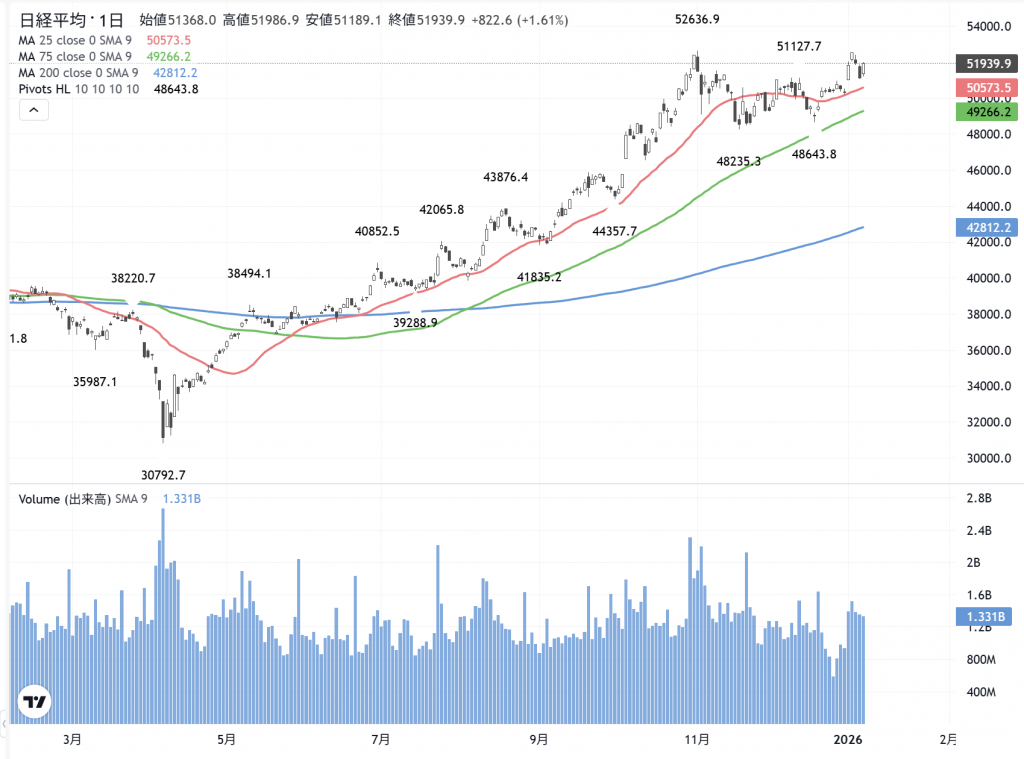 日経平均株価の日足