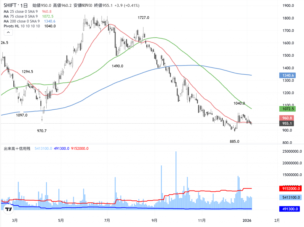 「SHIFT」(3697)の 日足