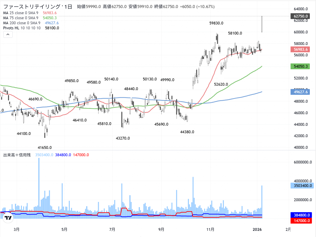 実は「ファストリ」も「空売り筋」が踏んだ相場でしょう。その取り組みは…売りの38万株に対して、買い残は14万株です。