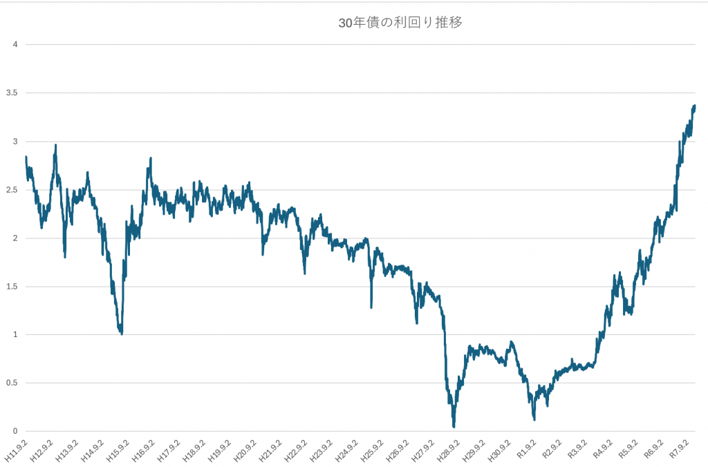 「超長期国債」の利回り上昇です。上は期間の長いもの…下は最近の日足、1月20日には3.765%までの金利上昇