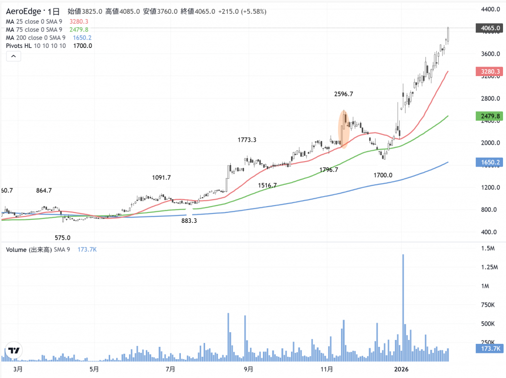 この時にユビキタスは2日間の連続ストップ高を演じ…同時に、カタル銘柄ですが…みなさんは覚えているかな? 会員の方は、狙っていた「ジャムコ」がTOBになって利用できませんから…その代りに推奨株にした「AeroEdge」(7409)がストップ高になりましたから、たぶん、その事を覚えているでしょう。