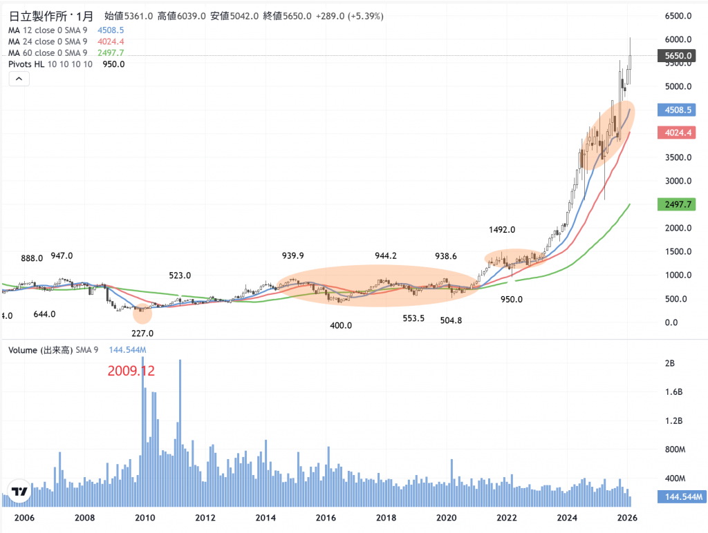 此処では日立(6501)の月足を観ると分かるでしょう。黒田さんが異次元の金融緩和を実施しましたが、退任の時に「ノムル」(社会通念)に阻まれて、成果がでなかった悔しい会見を述べました。カタルはこれを金融庁がリーマンショックの陰に怯え、バブル崩壊の失政を悔やんだ「トラウマ」に怯えた悪政が、清貧思想を日本国に蔓延させたと考えています。だから…国策が大切なのです。