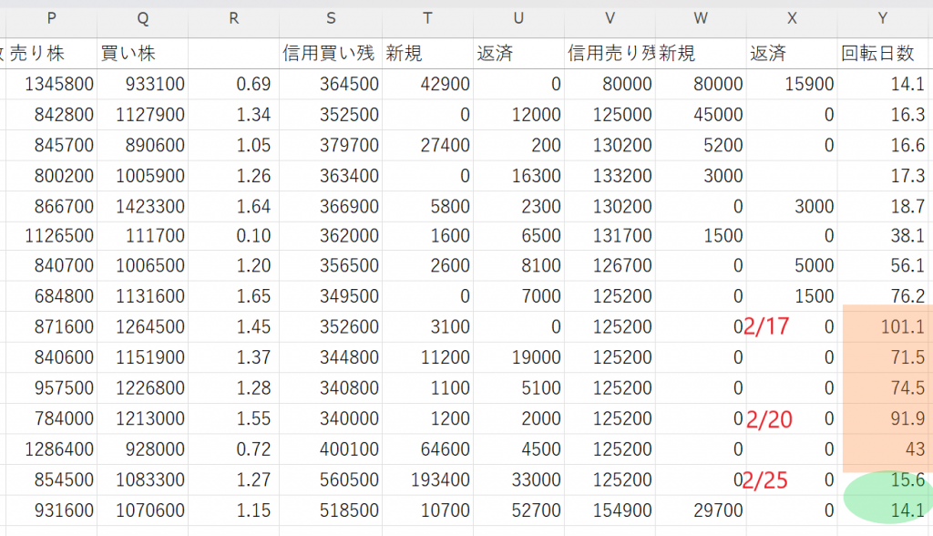 確かに100日まで回転が止まり…今週に入ってから、ようやく…普通の15日、14日になって来ていますが、しかし…昨日の相場では、この日証金の回転日数の3日割れの銘柄数は338銘柄もあるのです。