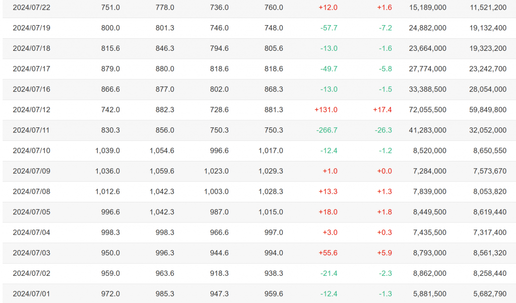 2024年7月当時のSIHFT(3697)の日足
