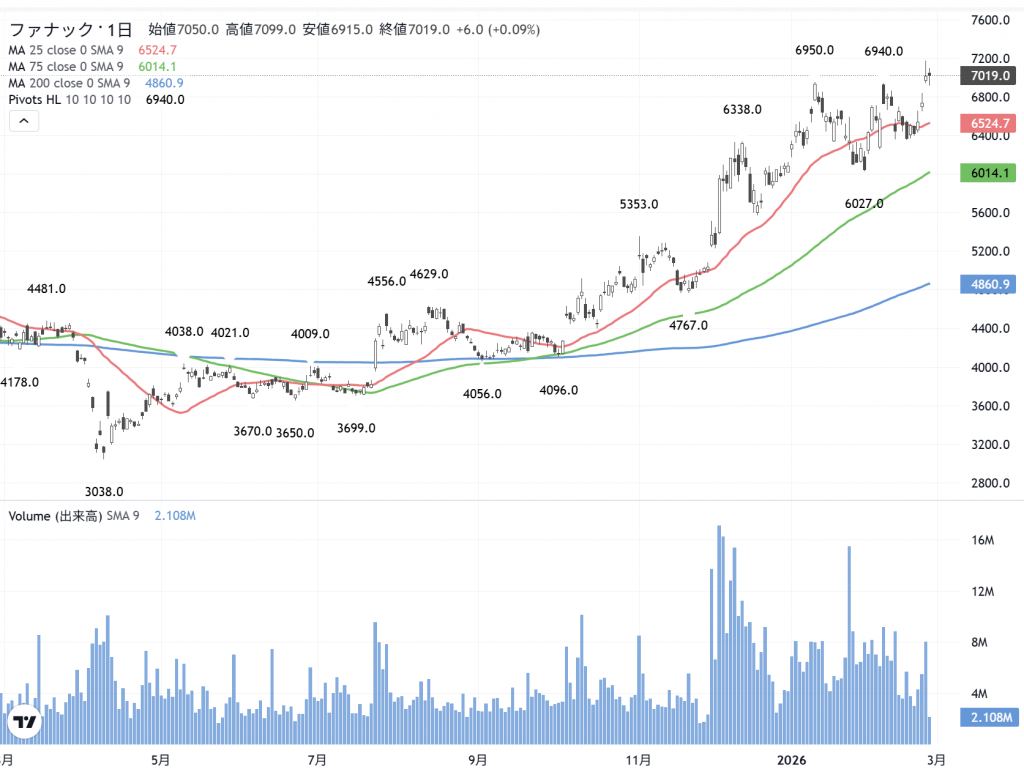 ファナック(6954)の 日足