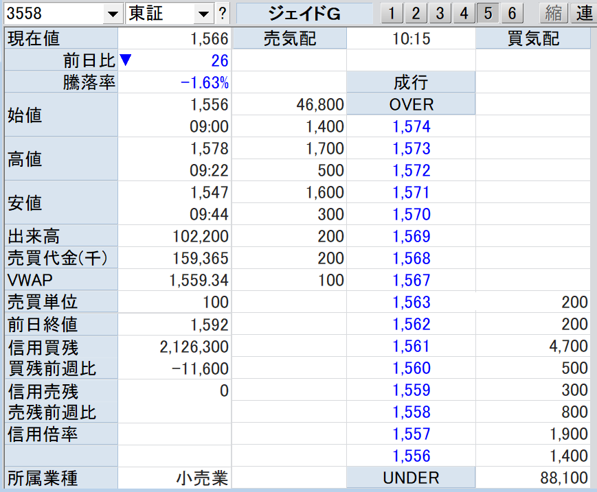 今…ジェイドG(3558)の1564円に1万株以上の買い物が入っています。このような見せ玉なんかするから駄目なのです。カタルは売ってあげましょうか…。今試しにカタルは1000株だけ売ったら、忽ち…誰かが「残り」を売りました。これは「アルゴ」ですよ。皆さんは、こんな「演出」に、いつも…「騙されている」のです。