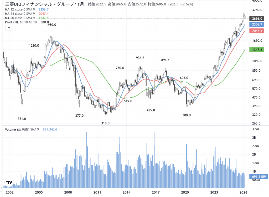 三菱UFJ(8306) の月足